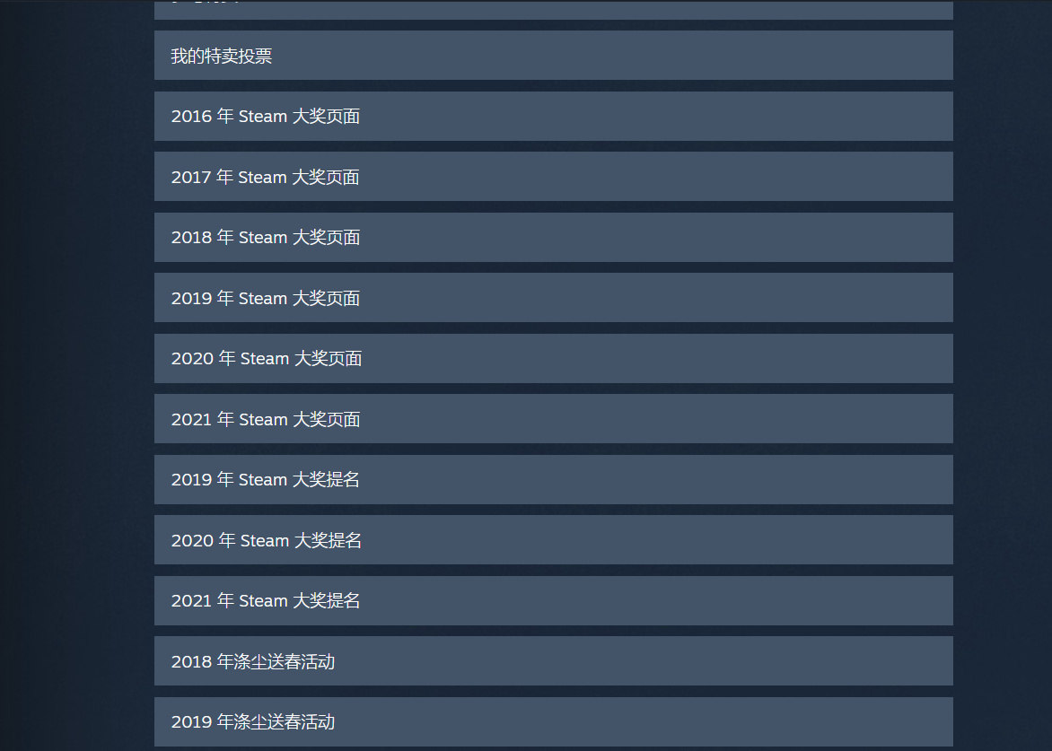 <您steam賬戶的相關數據>界面也可查看某些年份的steam大獎作品