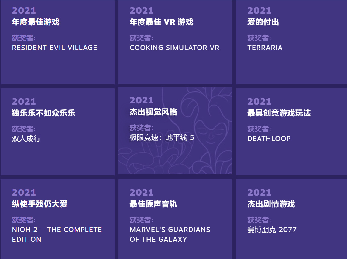比如2021年的steam大獎