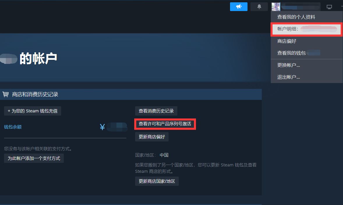 右上角賬戶名>>賬戶明細>>查看消費歷史記錄、查看產品和序列號激活