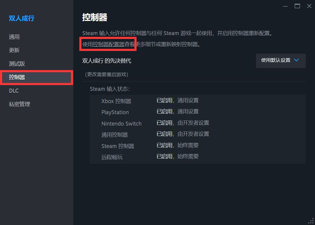 庫>>選定遊戲右擊屬性>>控制器>>控制器配置器