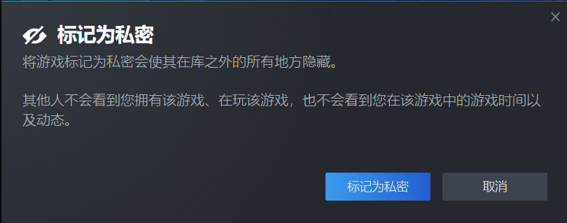 兩者區別就是<隱藏此遊戲>是欺騙自己,<標記爲私密>是欺騙別人