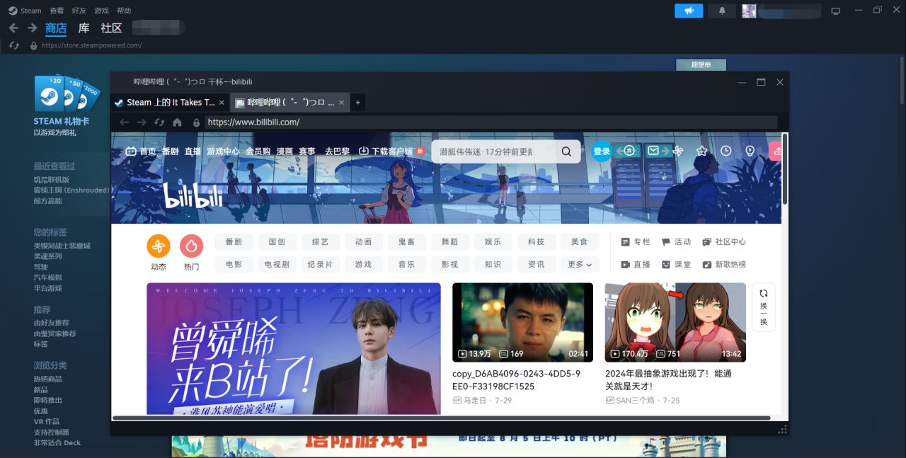 通過steam看視頻網站