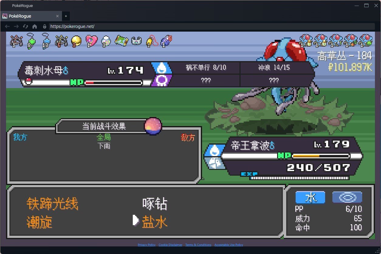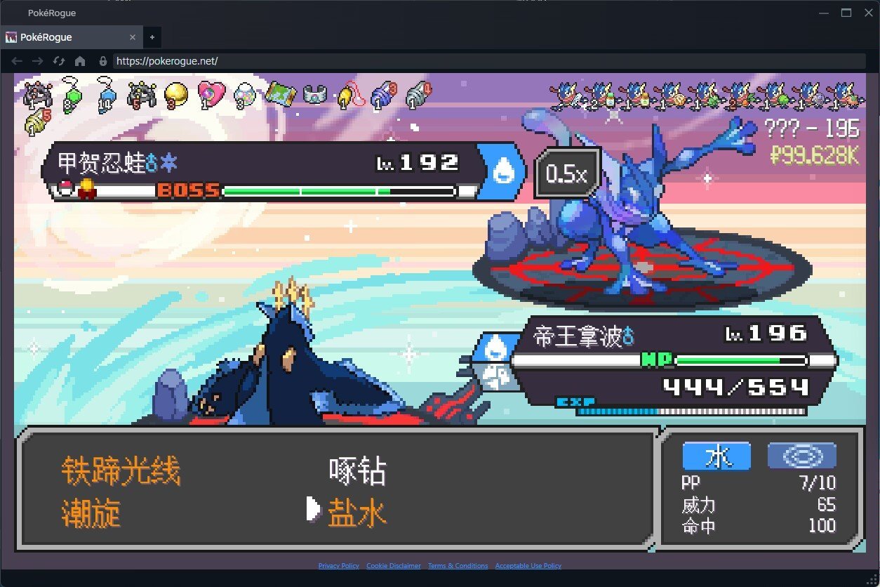 太貼心了,知道我不好打,還放了個鐵蹄光線把自己打殘。不過放完就跑了沒意思,一個鹽水打在甲賀忍蛙上居然打了快一格血,還不錯。