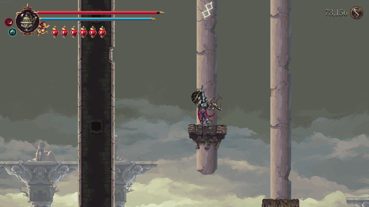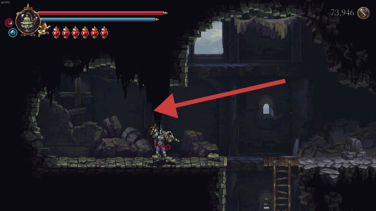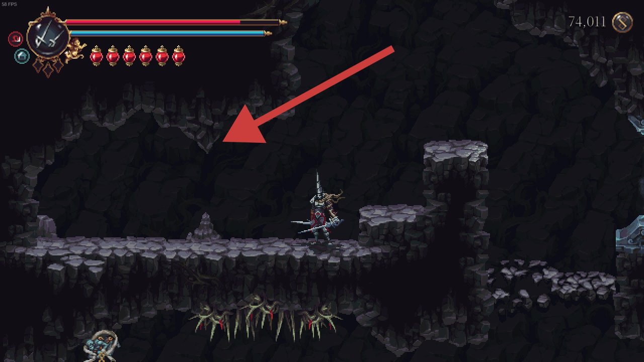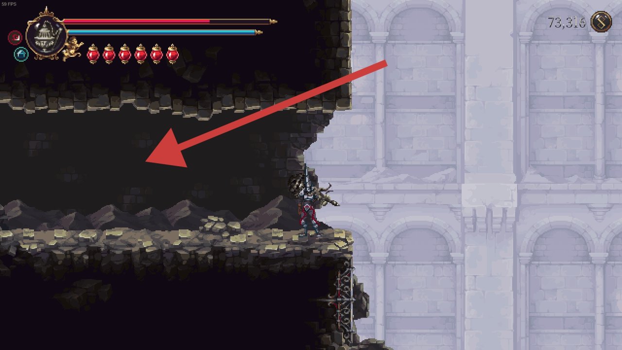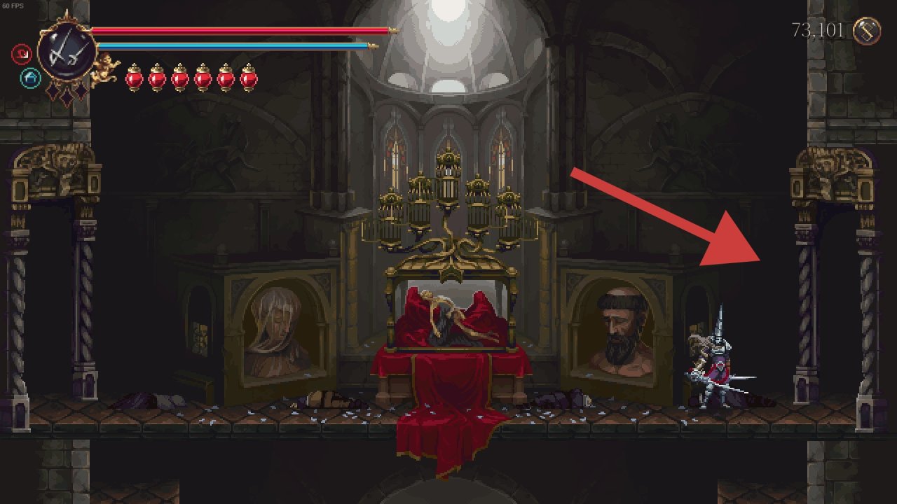 需要解鎖二段跳和雙劍後才能打到鏡子,上去後修女在右邊