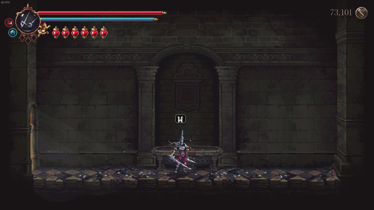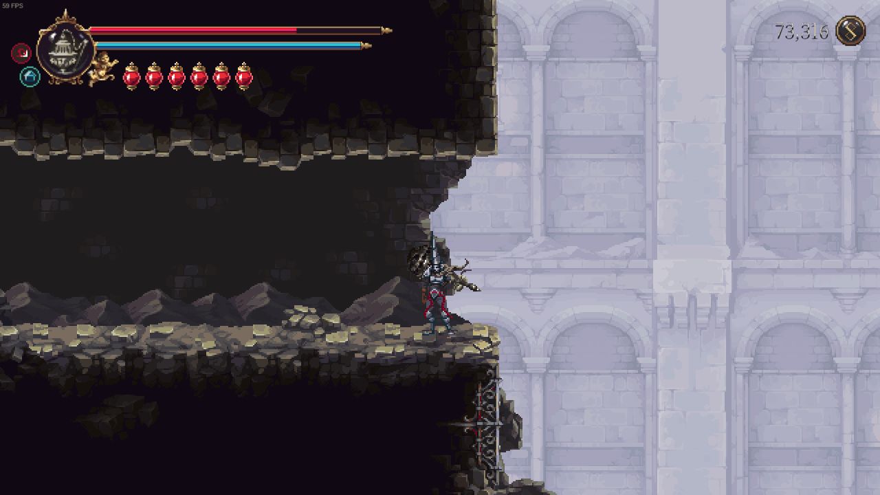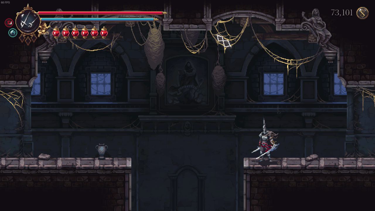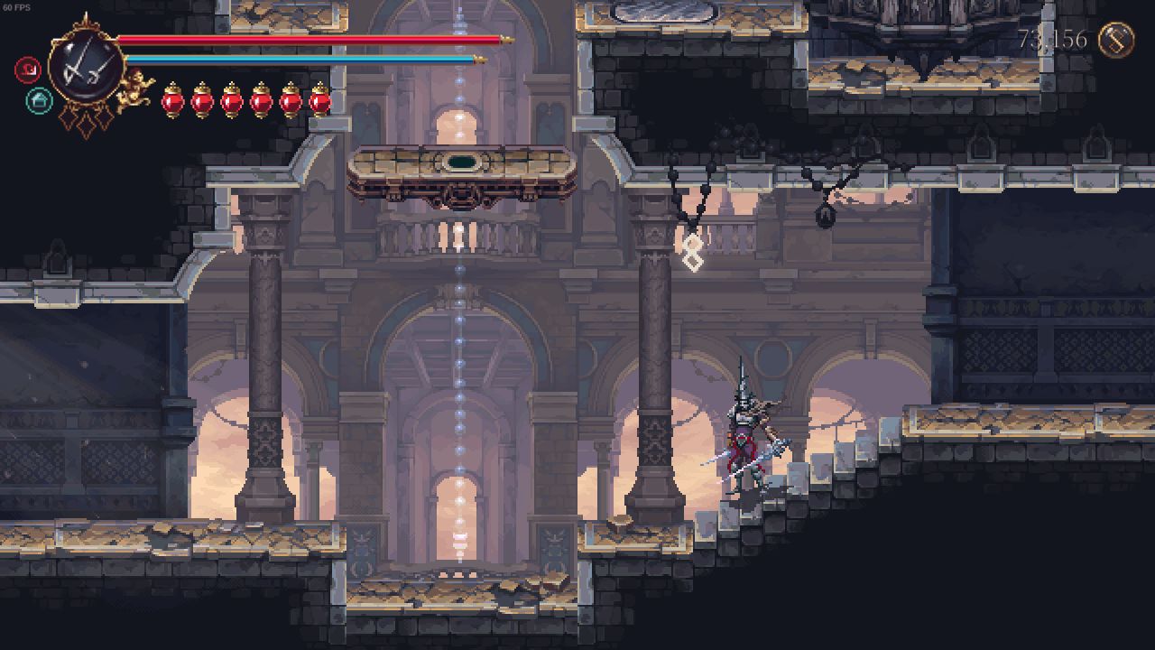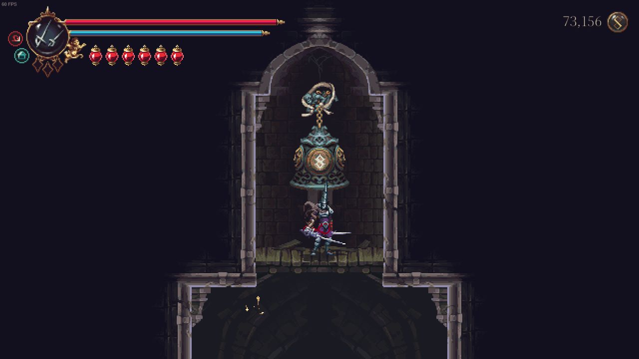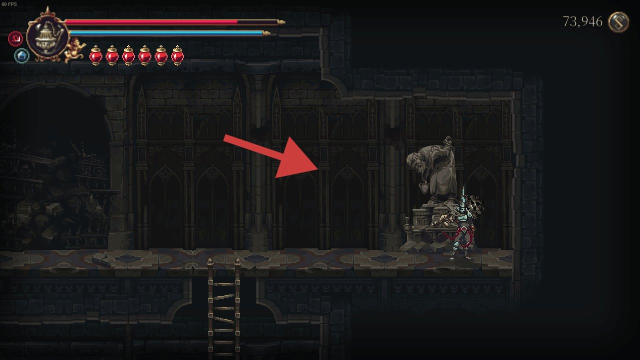 需要解鎖二段跳和雙劍後才能打到鏡子,上去後修女在右邊