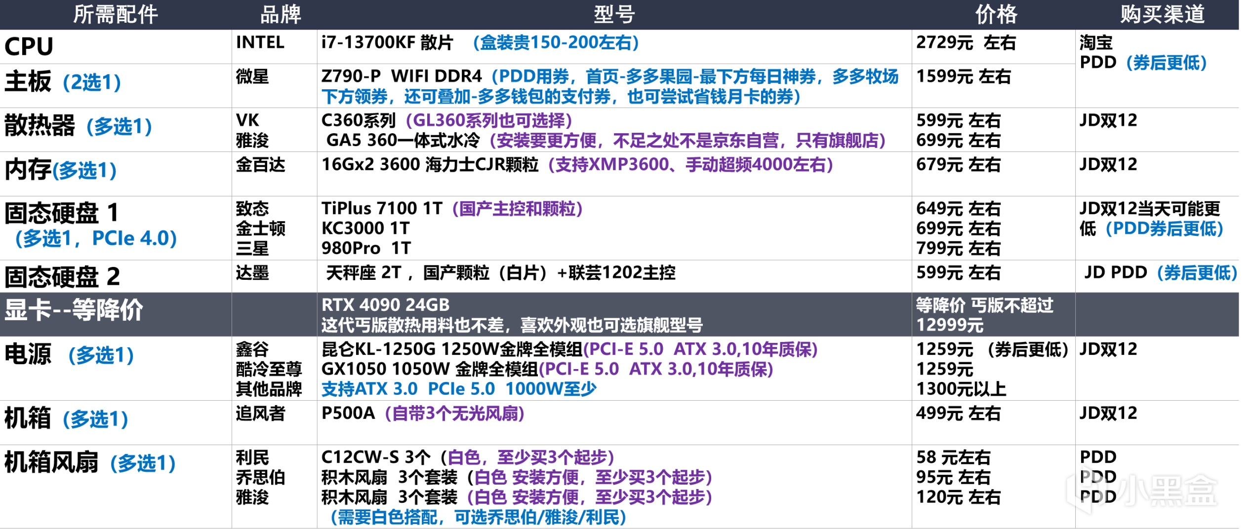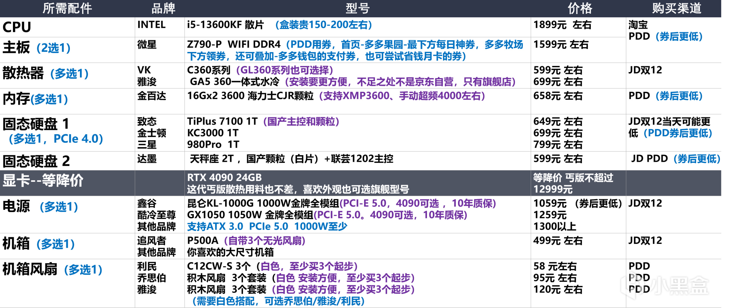 新增第四套配置,i5-13600KF方案,進一步提升CPU性能上限,未來升級旗艦顯卡也不拖後腿。