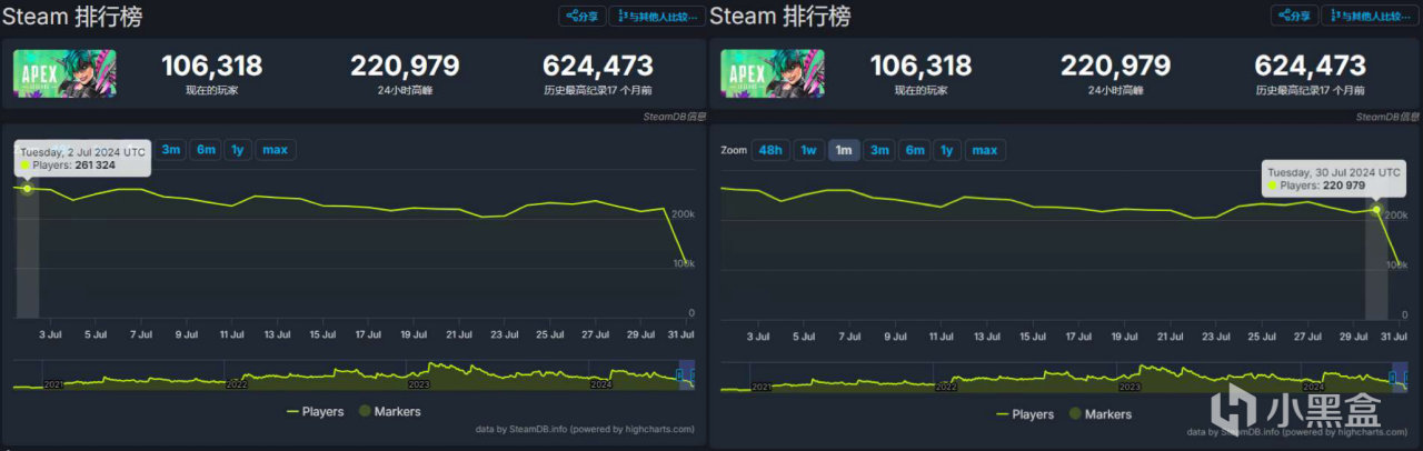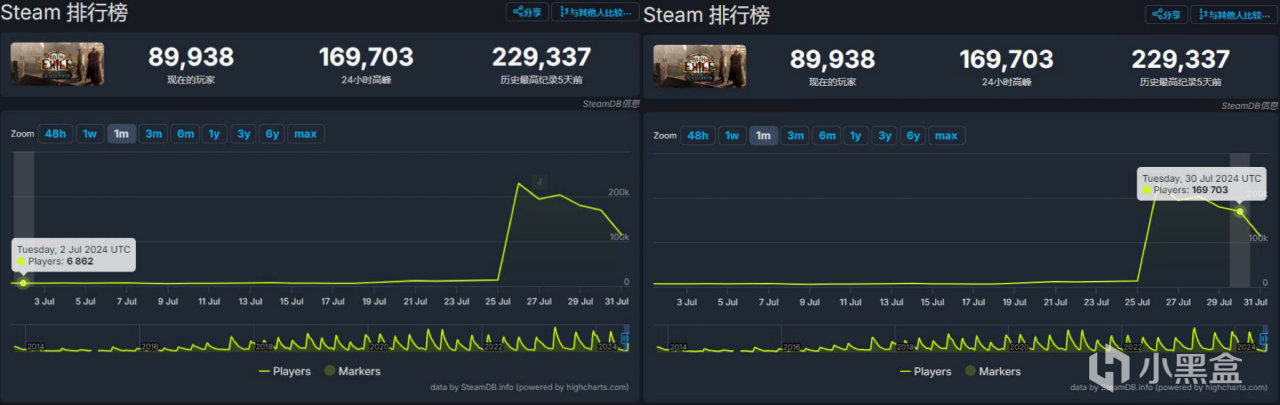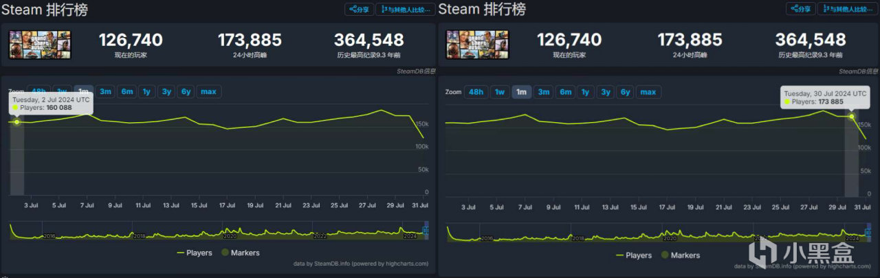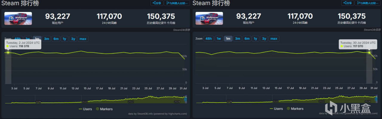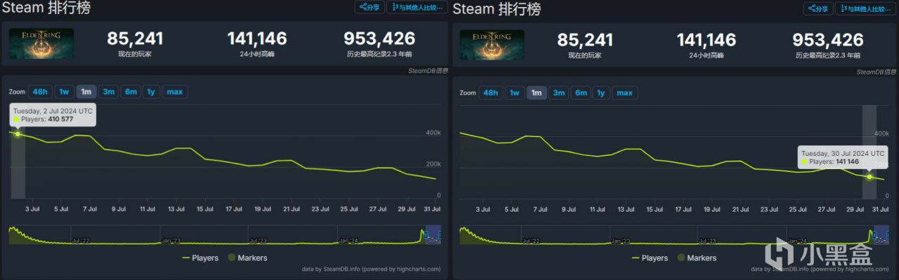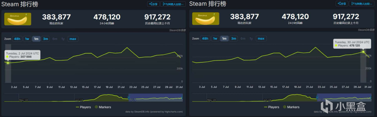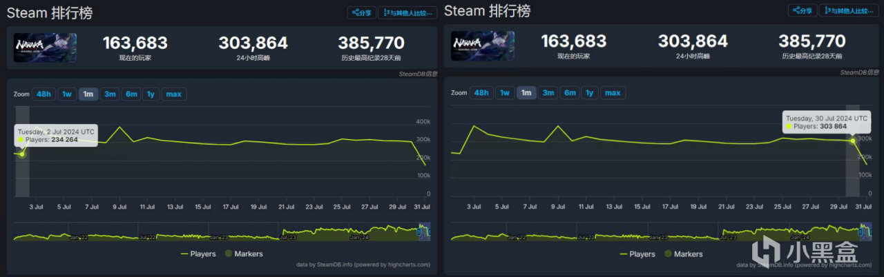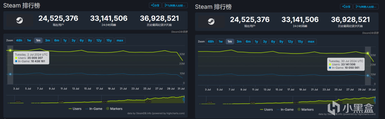Steam7月同時在線玩家對比