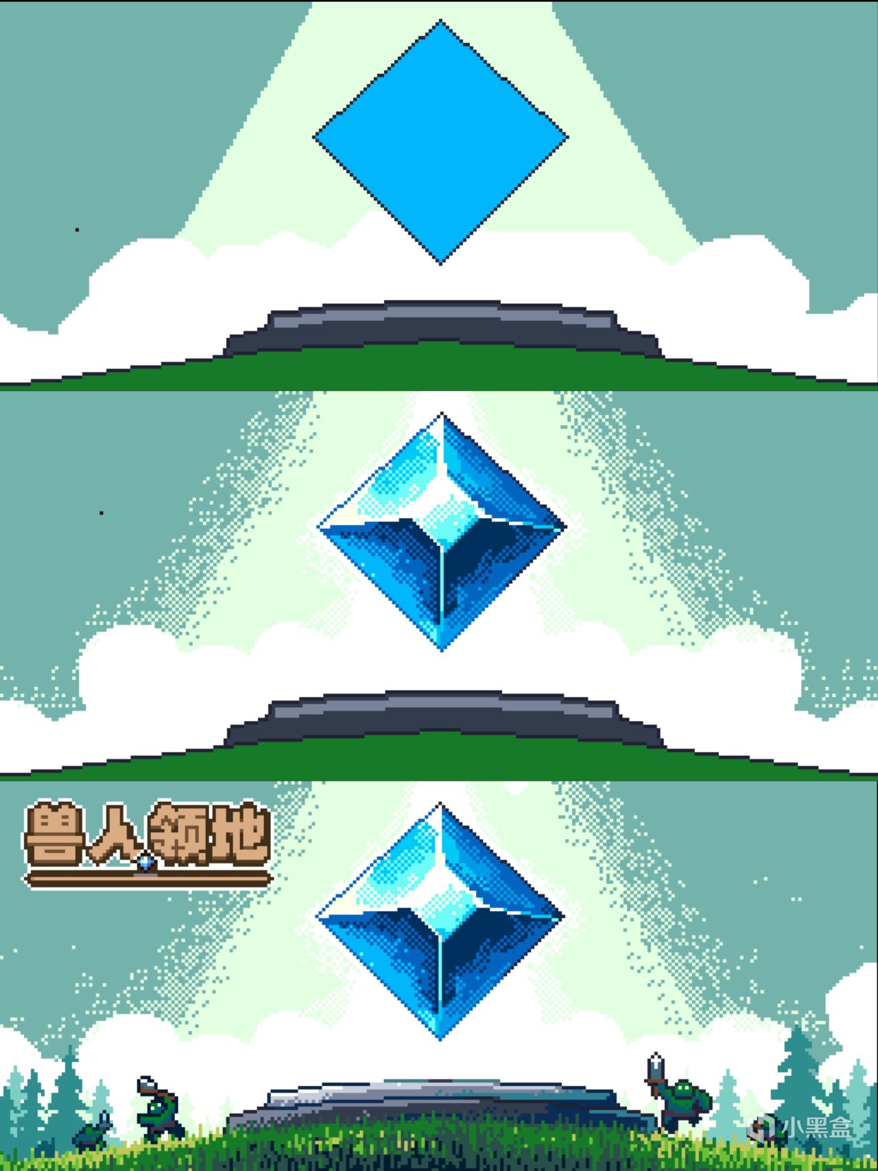 总结一下,我觉得这次比较取巧的是,因为新游戏是一大群兽人围攻一个棱形水晶塔,所以我选择了水晶作为画面的主体。因为水晶这种东西吧,即使画得很抽象也没关系,加上大面积的蓝天白云草地,不怎么需要画细节,主体画面基本就成型了。最后再给补上几个迷你的兽人,挥舞着武器冲过来添加一点喜感。不知道你们觉得怎么样,能不能看?不能我再回去画就是。