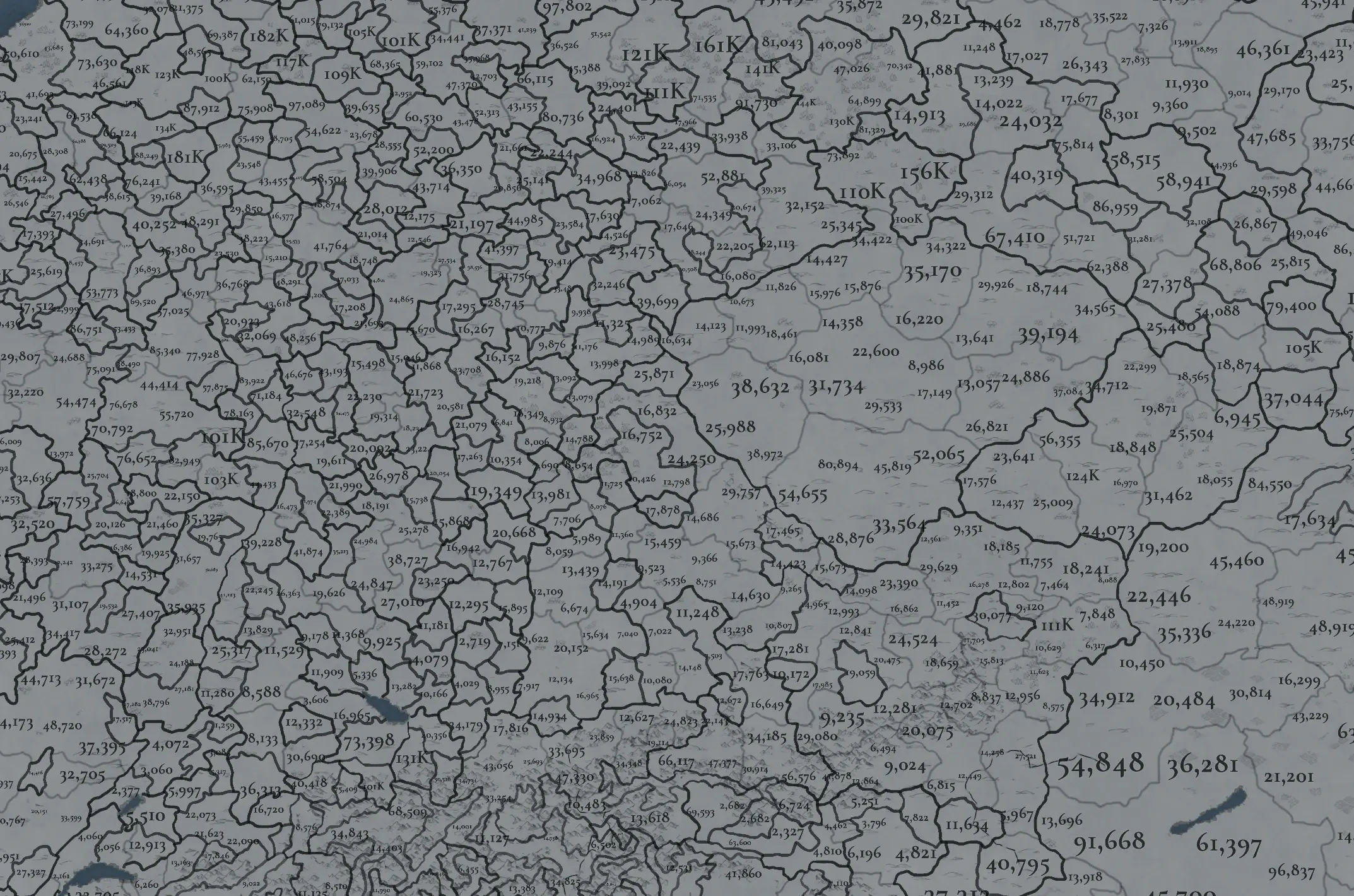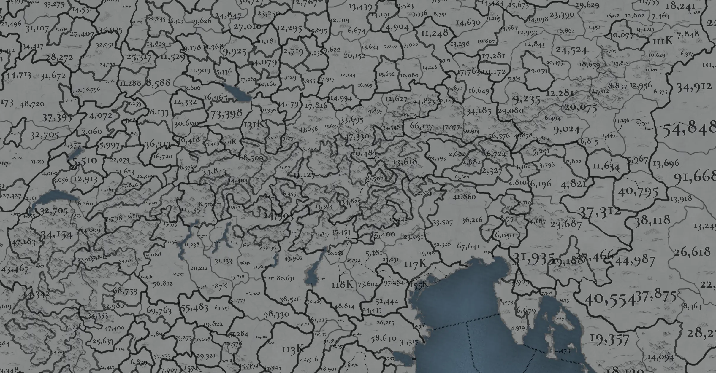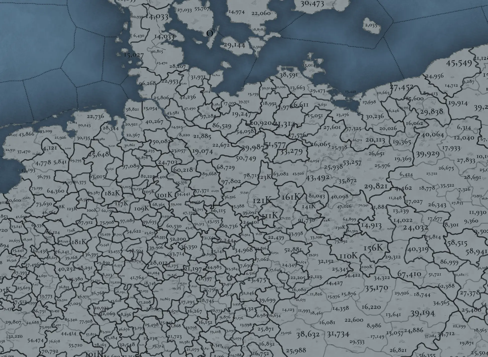 帝國的人口分佈不均。在這方面,波希米亞開局就佔有人口優勢,其南部(奧地利)和北部(勃蘭登堡)則是強有力的競爭者。