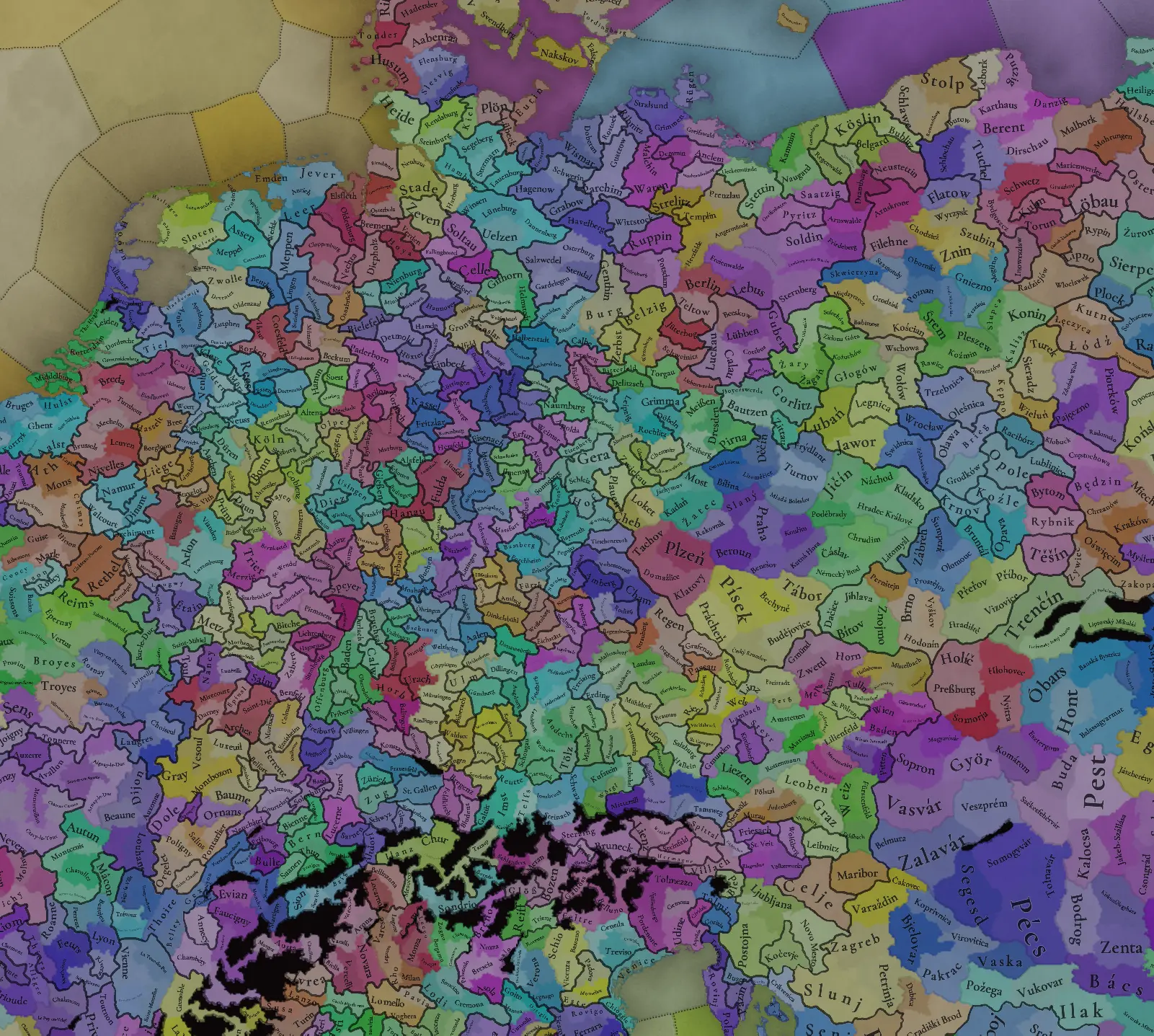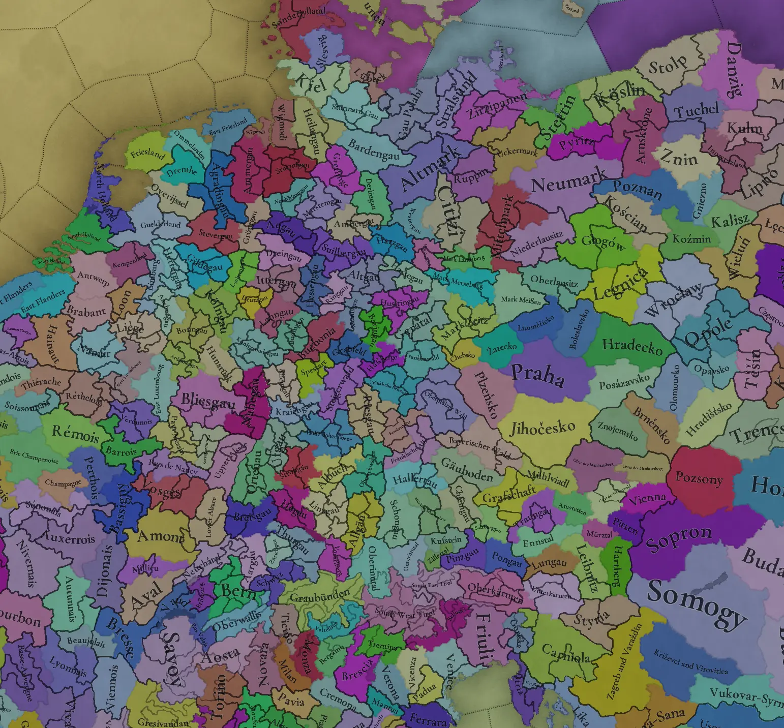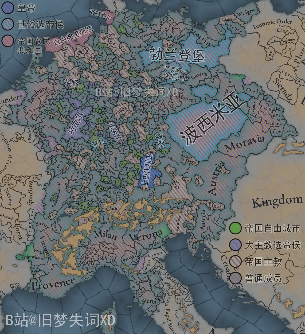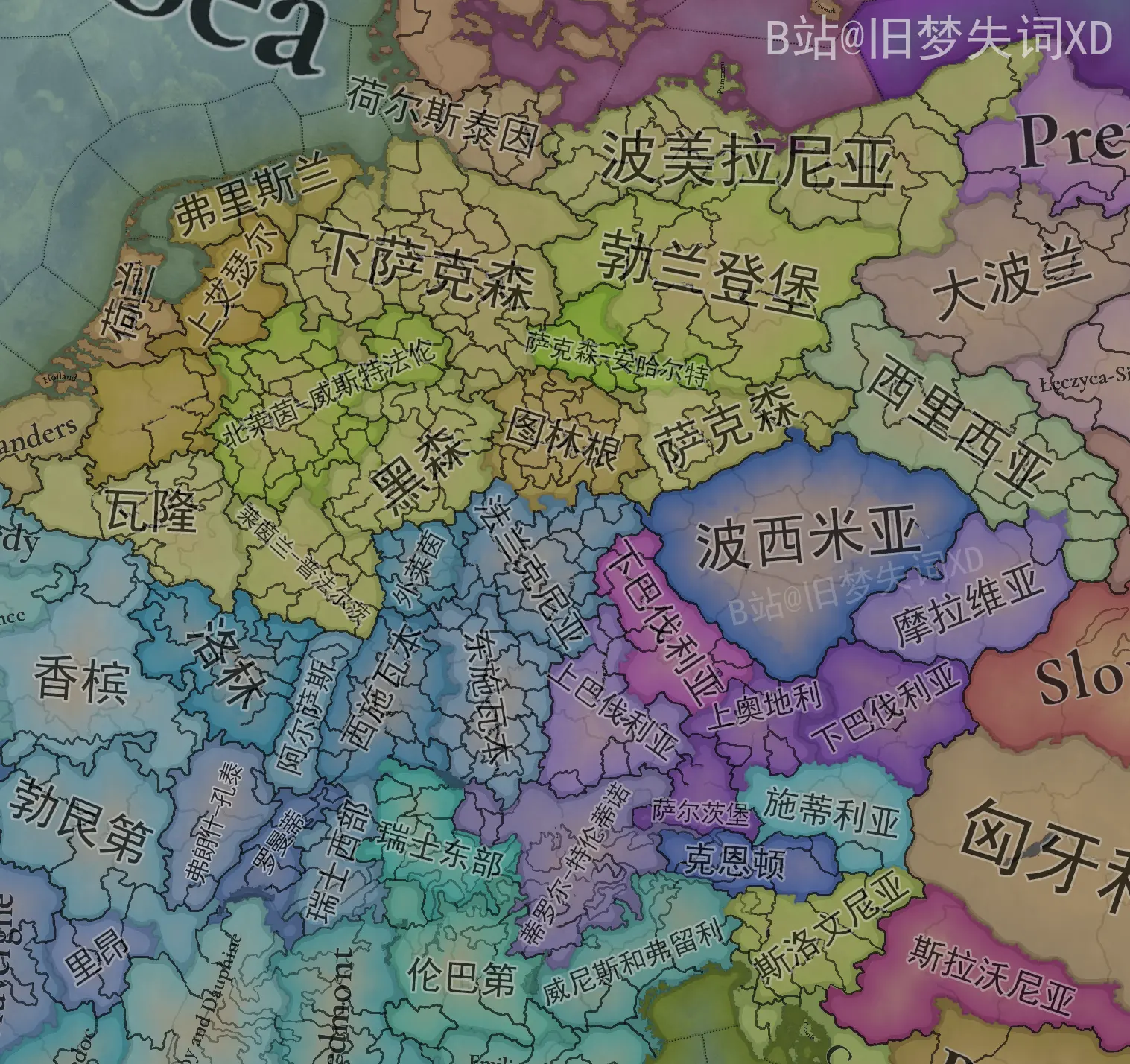 我們目前對區域邊界不滿意(或者說德意志地區負責人不滿意),因爲該圖更接近現代劃分,所以我們將根據大家的反饋重新劃分該區域。
