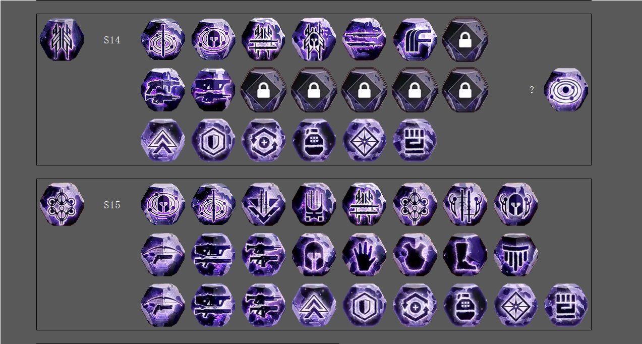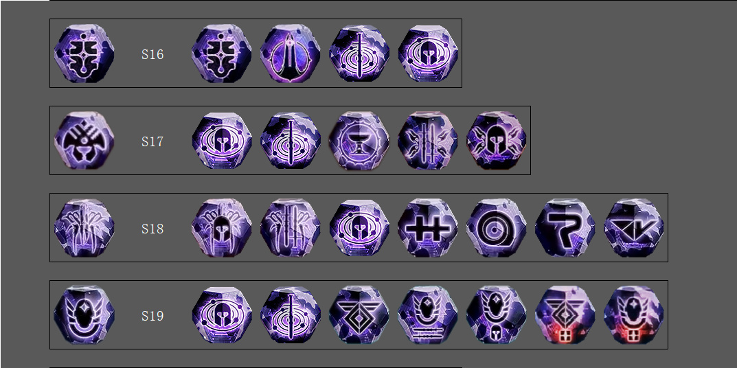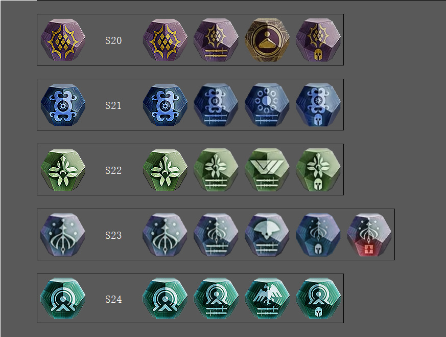 S11影臨賽季開始出現本影水晶,S12休息一個賽季後連續好多賽季全都是本影球,當時不太喜歡現在細看還挺喜歡...可惜這些球light點gg上已經找不到了,於是翻了好多視頻慢慢湊了這麼多,S14永夜賽季還沒找齊,希望全解鎖的盒友帶圖評論一下,讓我把S14賽季的補全