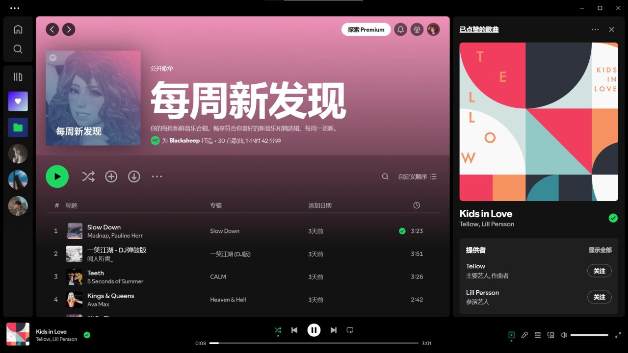 Spotify讓我感到驚豔的地方是它的推薦算法,真的有東西,"每週新發現"會根據你的喜好進行推薦,每週一更新,雖然這周因爲有重複和不喜歡的居多,沒添加多少,但是上週幾乎是把整個推薦歌單全部添加了,智能隨機播放雖然也會給你推薦新歌曲,但用下來體驗一般般