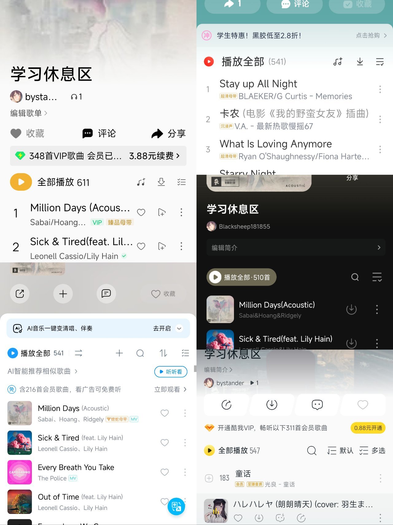 轉用QQ音樂的契機,好像是過年在QQ的活動裏,弄到了一個30天的綠鑽,本着不能浪費的原則,果斷轉了😋,不過即便綠鑽時間過了之後 也用了一段時間,畢竟背靠大樹,體驗還是可以的,版權挺全