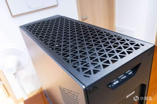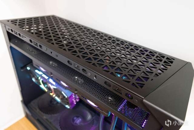 機箱頂部採用的是全鋁面板幾何形柵格開孔,視覺表現相當不錯。