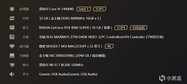 再次看下這套配置,之前忘了說了,主板方面選擇的是ROG MAXIMUS Z790 DARK HERO,也是狠貨。