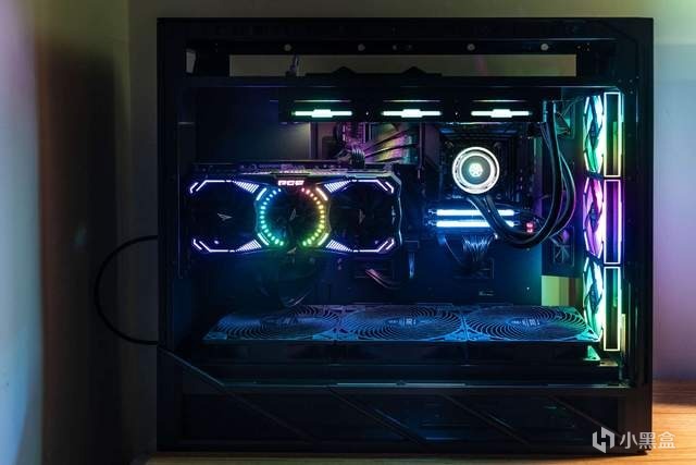 這臺銀昕SilverStone ALTA F2全塔機箱點亮後的顏值相當出色,海景房結構也能讓機箱內部的硬件完美展示。