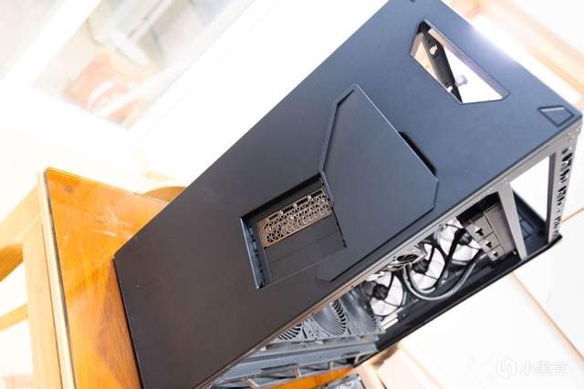 在機箱頂部的冷排支架上,可以看到預留好的水管孔位,便於玩家安裝更多類型的高端定製水冷系統。
