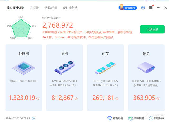 娛樂大會的得分比較奇怪,I9+4080S的組合依然沒有突破300W分,或許是版本的鍋。