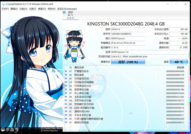 硬盤:金士頓KC3000 NVMe SSD 2TB