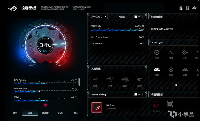 在銀昕SilverStone這款星輝360水冷和機箱優秀風道的壓制下,這枚INTEL I9 14900KF處理器的待機溫度,可以保持在34℃左右。