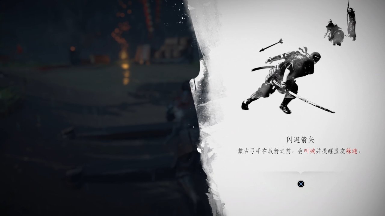 在戰鬥中,玩家會面對不同兵種的蒙古士兵,其中不乏弓箭兵。遊戲拋棄了其他同類型遊戲中對於投擲物和飛行物等攻擊的紅色箭頭引導,而是選擇讓弓箭手在放箭前會喊話提醒同伴避讓。這個設計可以說非常之妙,既符合現實又服務了遊戲性,同時沒有徒增突兀感。