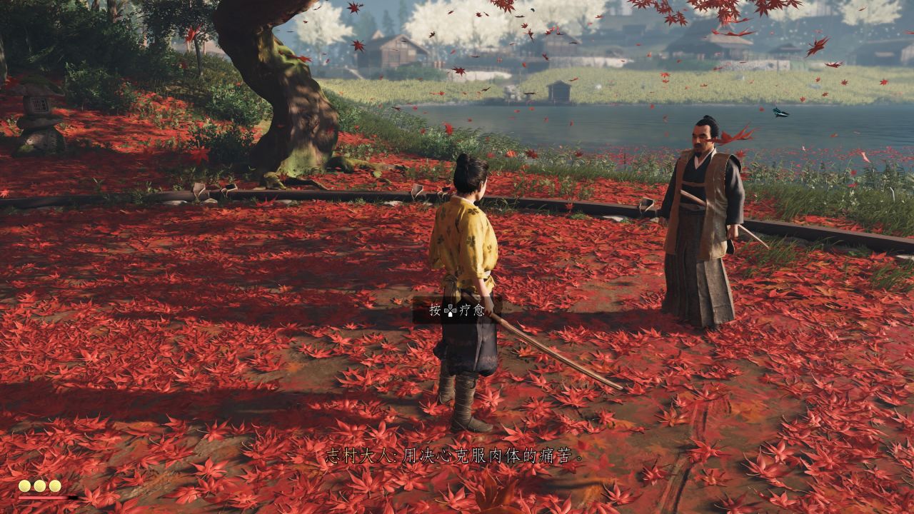 其次,遊戲當中恢復血量的手段也創新了一個新穎的設計,即決心繫統——武士在戰鬥中不靠嘬葫蘆喫燒雞回血,而是通過信念來壓制疼痛。這樣的設計與遊戲內很多的精妙安排相得益彰,同樣是兼顧世界觀設計與遊戲性的設計。