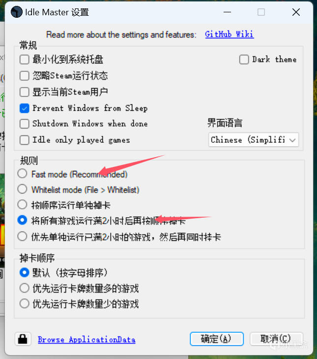 8.然后我们点击文件,点击设置,先选择优先把所有游戏挂满2小时,当所有游戏都挂满2小时后(挂的时间根据你游戏数量而定,一般比2小时要多,软件界面上可以看到游戏时间,挂满了就手动切到快速模式),选择fast mode继续挂,这个时候挂卡的速度就非常快了。