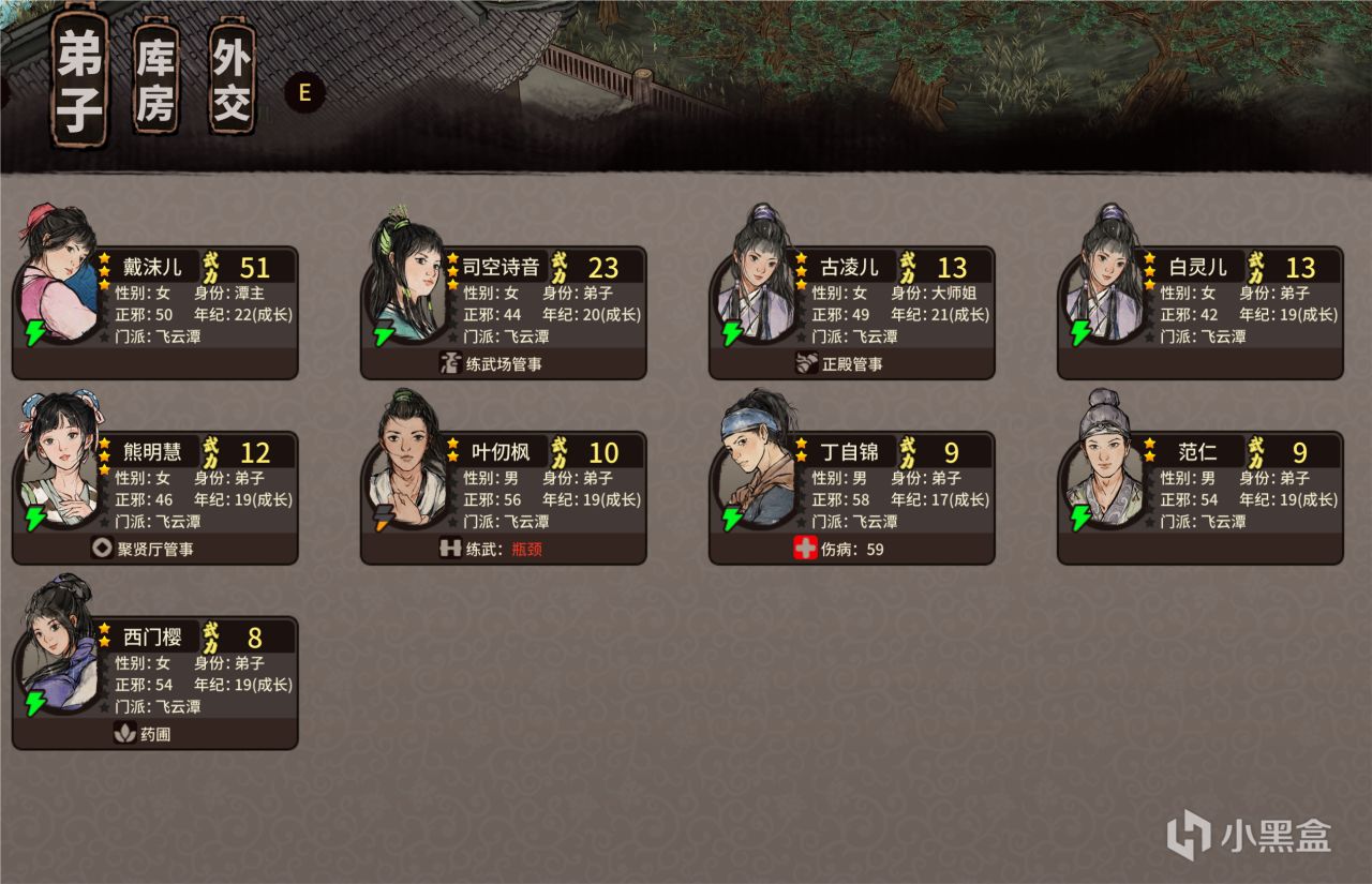 跑题了,《江湖录》的门派模拟经营养成,可以说是比较传统的公式化养成,但核心便在于:落实到个人。