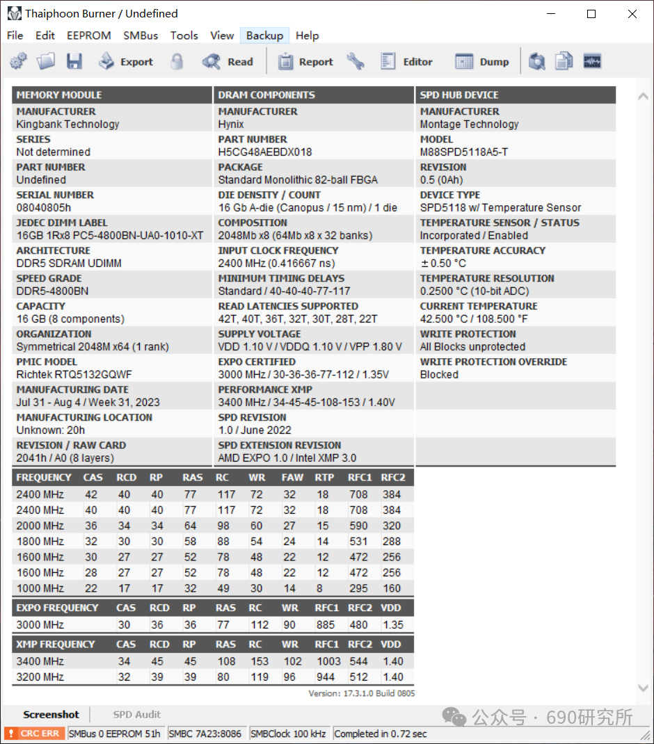 顆粒是來自海力士的A die顆粒,PMIC芯片是來自Richtek立錡科技的RTQ5132GQWF,是比較主流的PMIC芯片。