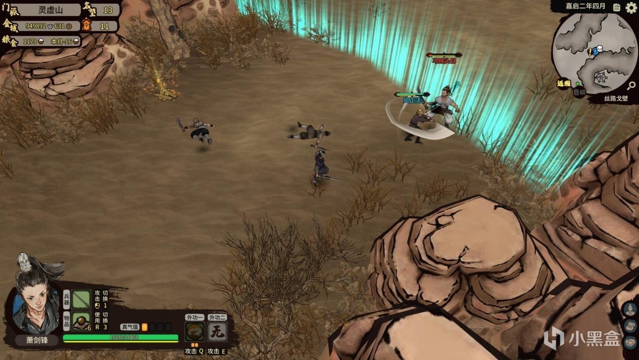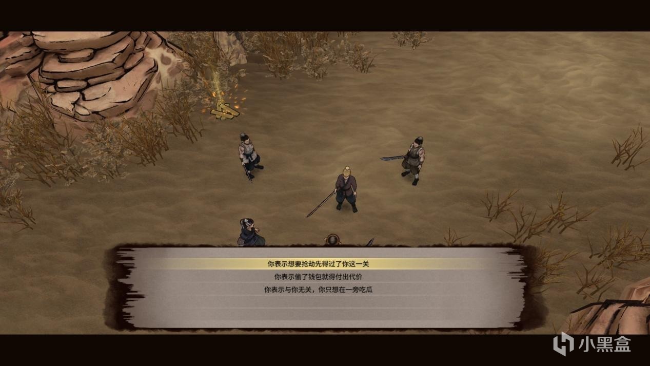 在地圖中閒逛會偶遇特殊事件,例如奸商賣貨、偶遇大師等。除去特殊事件,在野外地圖四處散落着可供拾取的資源,按F即可蒐集。