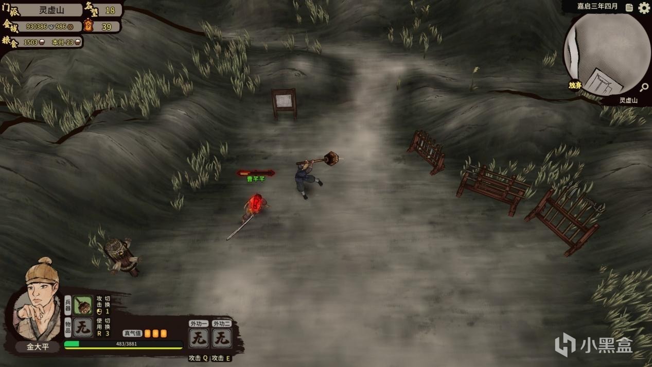戰鬥系統做的比較簡單,利於玩家上手。鼠標左右是攻擊與招架,配之QE的內外功技能。簡單來說,玩家可以從劍、大刀、苗刀、摺扇等基礎類型武器中選擇一種,各種武器攻速威力不同,玩家自由選擇。在得到對應武器招式祕籍之後,在閉關室鑽研掌握之後,就可以在Q鍵使用,內功技能同理。