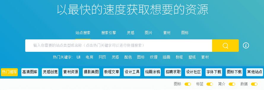 “以最快的速度获取想要的资源!”素材搜索导航。