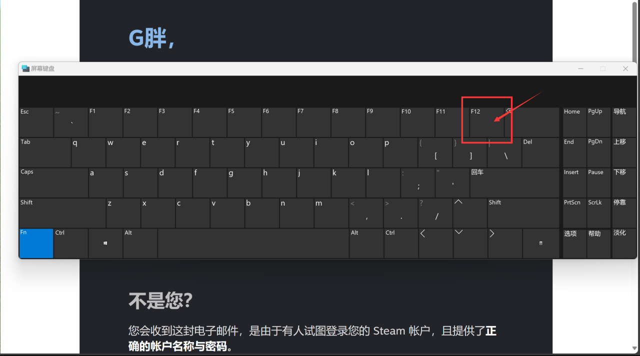 第一步:找到一個steam登錄令牌的網頁,按下鍵盤上的F12或者Fn+F12,進入開發者模式