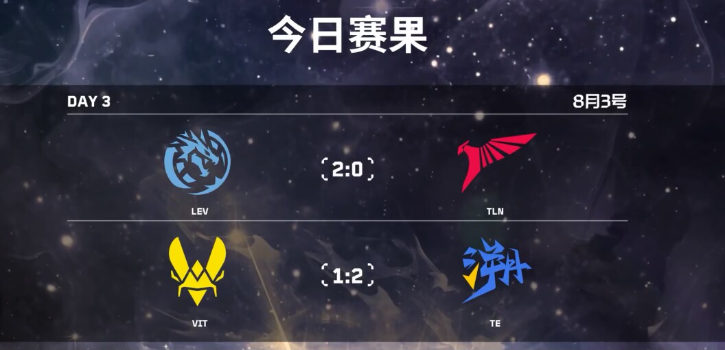 2024年8月3日 无畏契约首尔冠军赛: TE 2-1 VIT 小蜜蜂战术缜密,枪法压迫十足,但是TE敢打敢拼,韧性十足,哪怕一度被逼入绝境也能勇猛前进,力克VIT获得胜利,他们是好样的,是我们cn的骄傲!恭喜TE获得世界赛首胜,这也是CN冠军赛首胜!