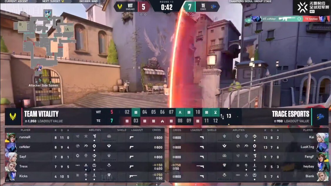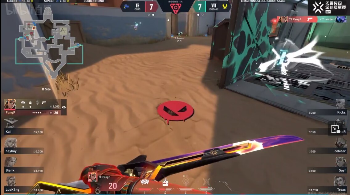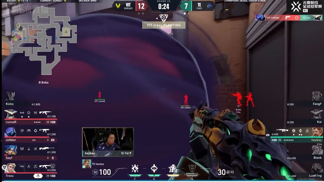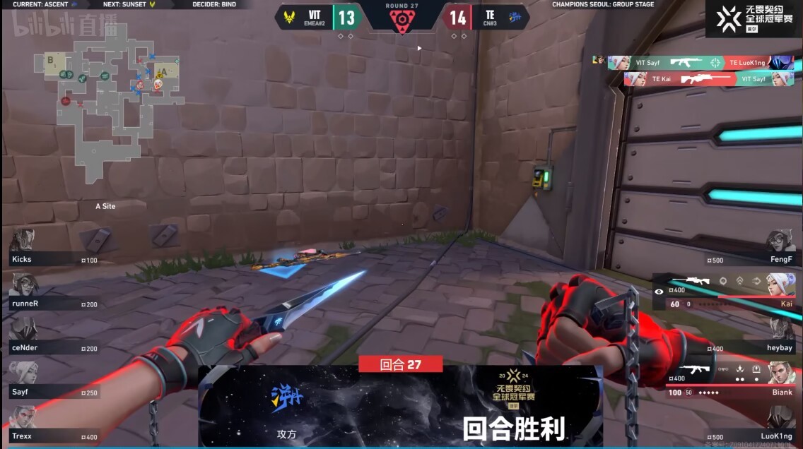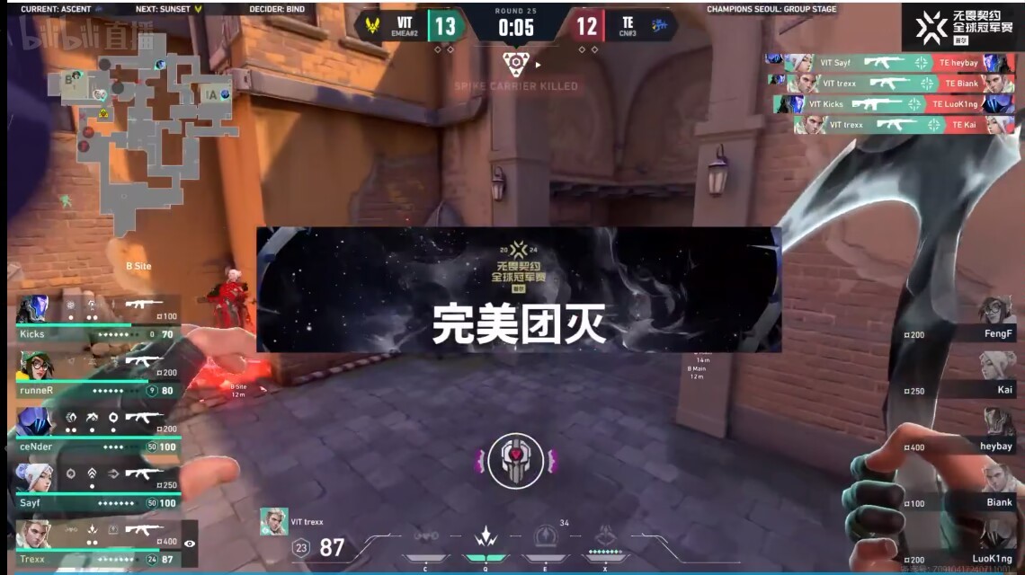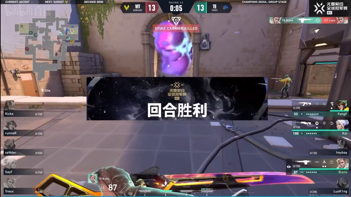 加时关键局TE防守方,Kai无甲大狙,加时继续 TE 13-13 VIT