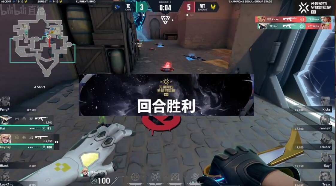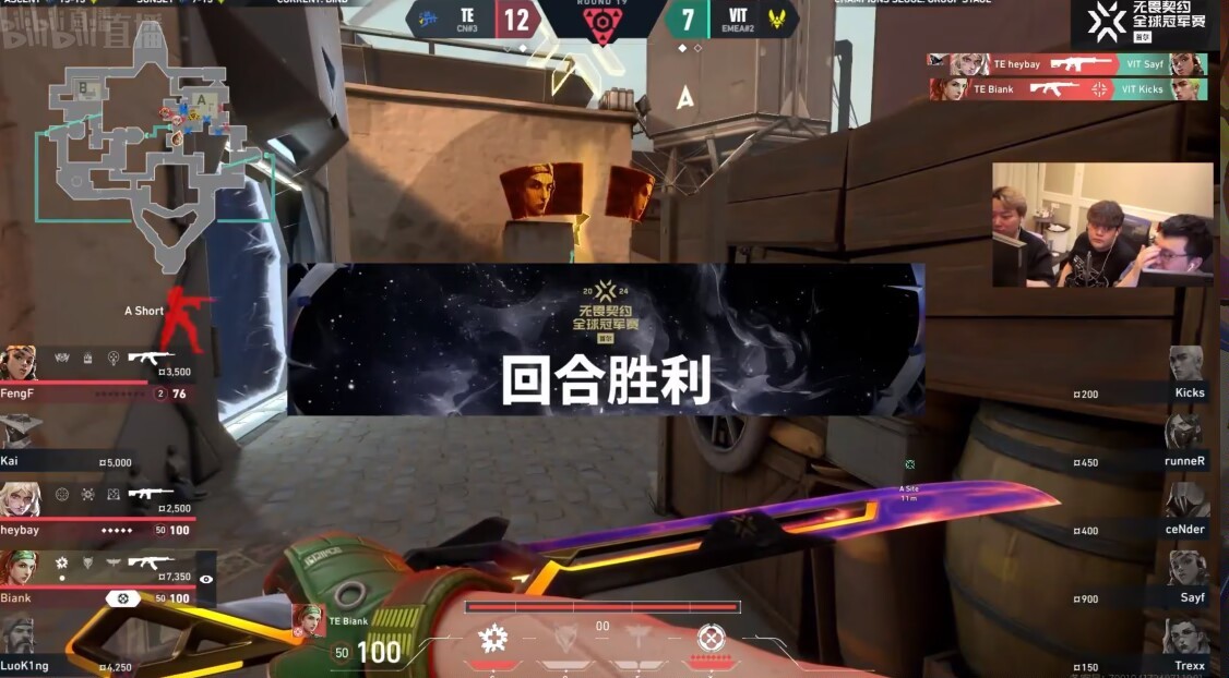 TE连续追分,赌点正确,heybay发力三杀,TE9-7领先!导播UI卡了,VIT叫出暂停调整,但还是被抓住弱侧,