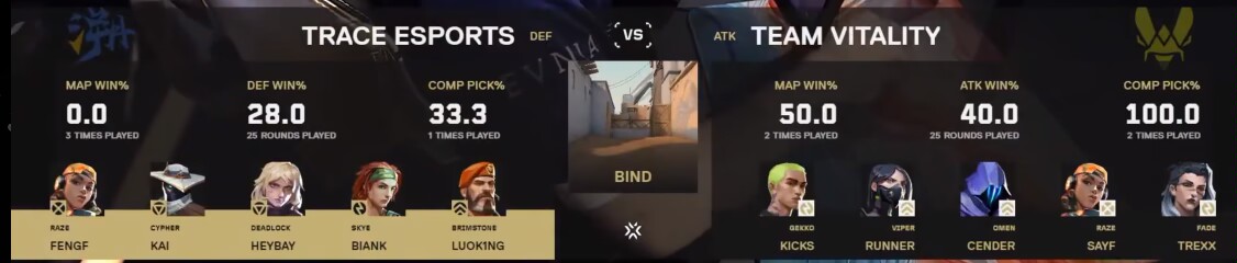 TE输掉手枪局后比分差距更大,TE有些急躁前压掉人,后续虽有找补,但有些操作变形,VIT不断提B,比分来到 TE 5-13 VIT VIT先拿到七个赛点,TE最后的暂停交完开始追分,小bian残局四杀振奋军心,但差距过大VIT抓住机会拿下最后一局eco翻盘,TE输掉了图二,Trexx的猎枭这两张图真是射就有,那天TH的RieNs也是这样,EMEA的箭都那么哈人吗。