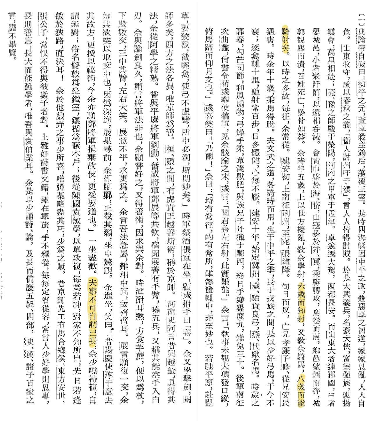 對於曹丕的評價我們先從他自己寫的文章來看,在《皇覽》中的描述也是補全了我們對曹丕少年時代的瞭解。在看到“八歲能騎射”這個描述之前我認爲的曹丕一直是一個紈絝子弟的形象。而且曹丕常年跟隨曹操征戰,甚至宛城驚心動魄的那一晚曹丕也在宛城(不得不說從某種角度來說張繡當時真的差點以一己之力幹碎了曹魏政權)而且曹丕還略懂一點劍法,不管怎麼看都是文武雙全的存在。