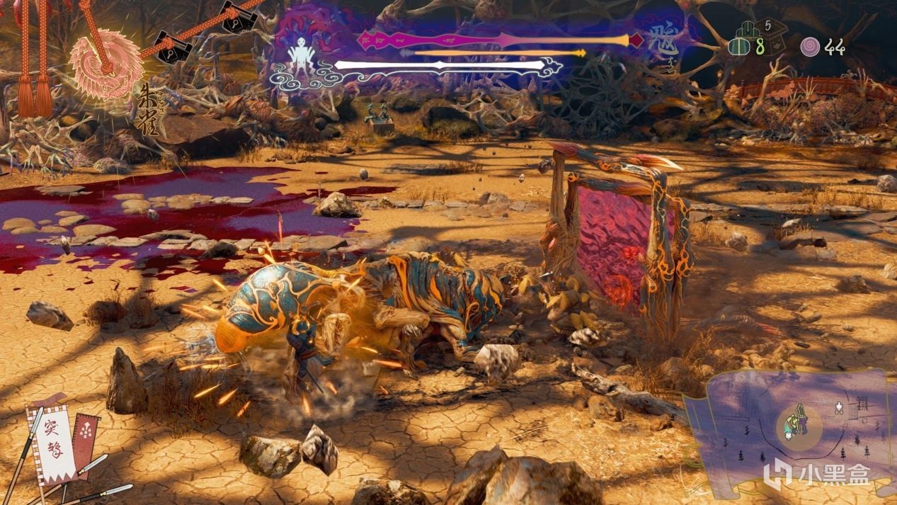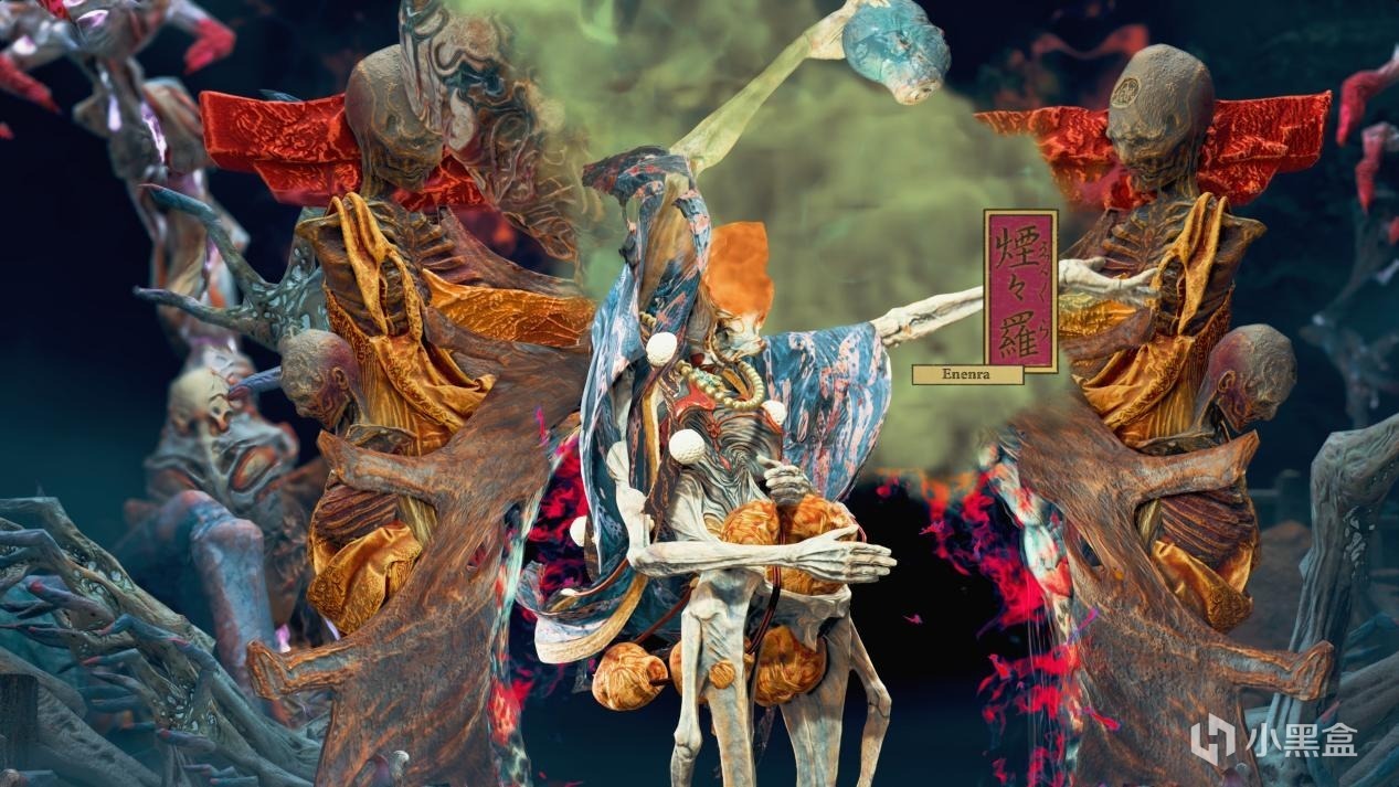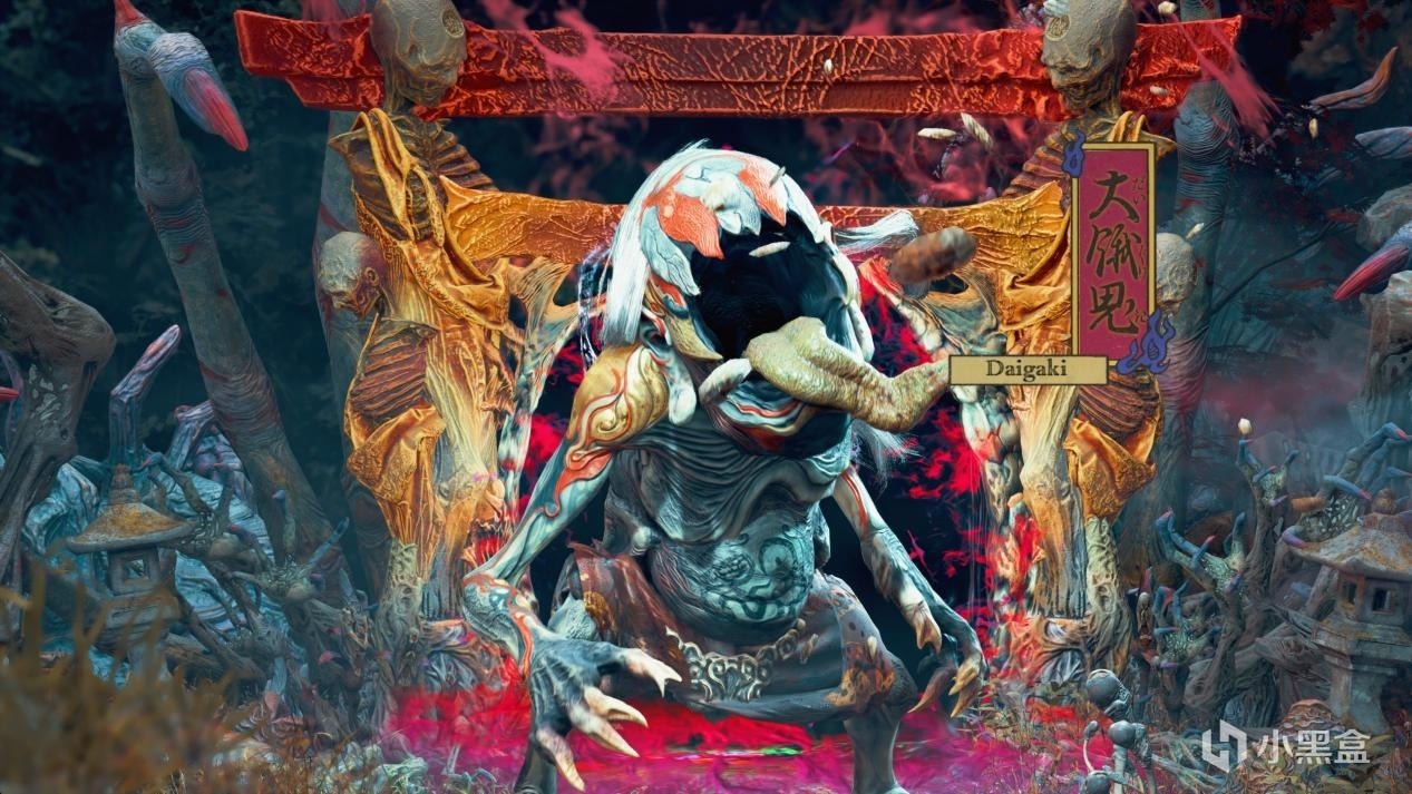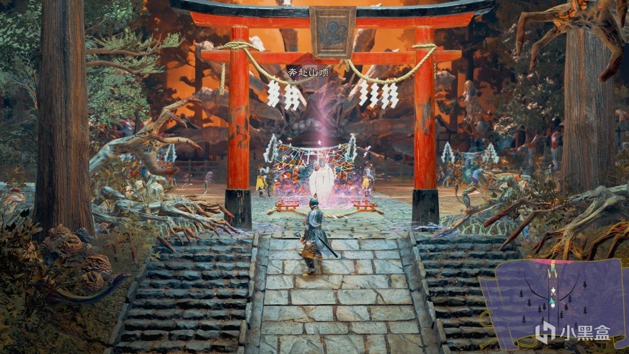 神道教與和風文化不僅體現在巫女的神樂與能樂、各種畏哭怪物與神話的映射之上,從鳥居林立的村落設置,到圍繞着解鎖小型藏物神龕設計的關卡內探索,再到遊戲內的收集品會記錄在御朱印或者繪馬之上,甚至當你按下菜單鍵,各種跳出遊戲外的UI也是通過繪在倒懸的扇面上呈現在玩家面前。