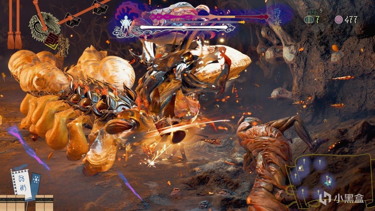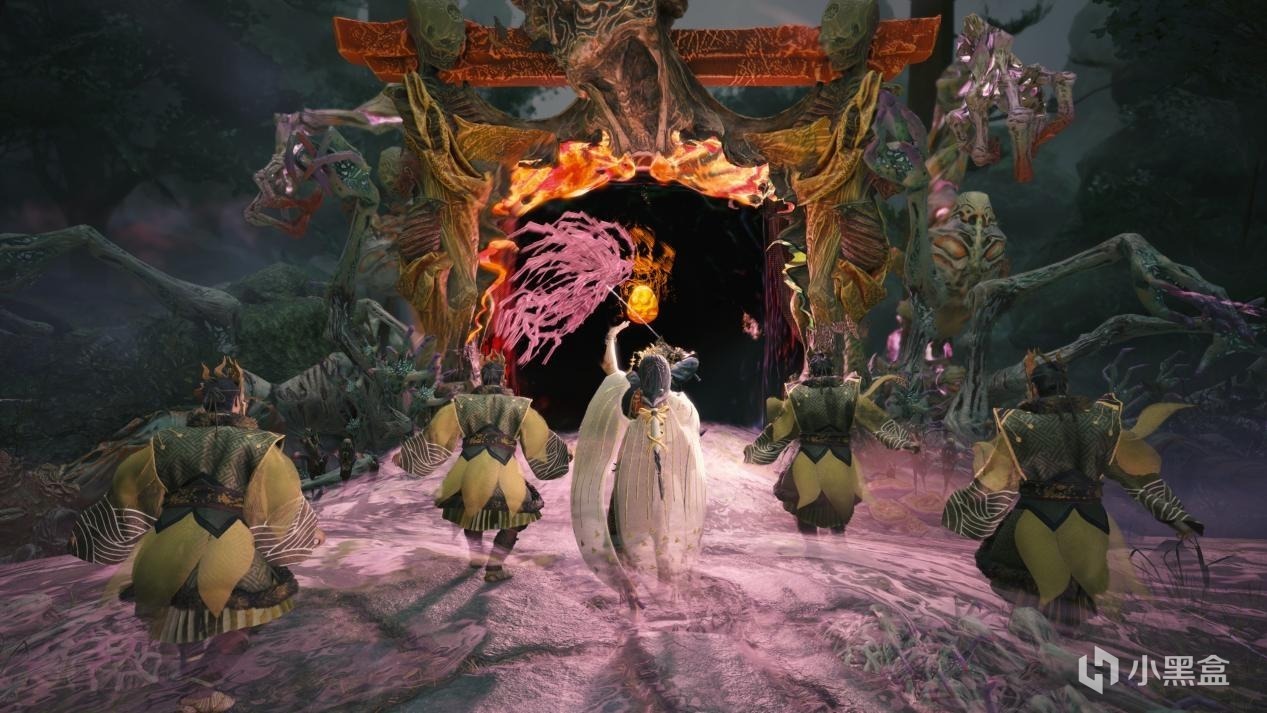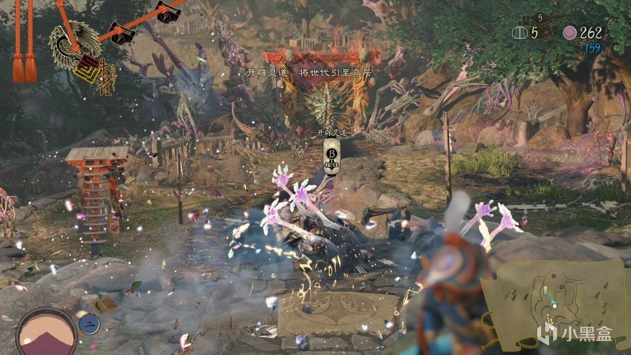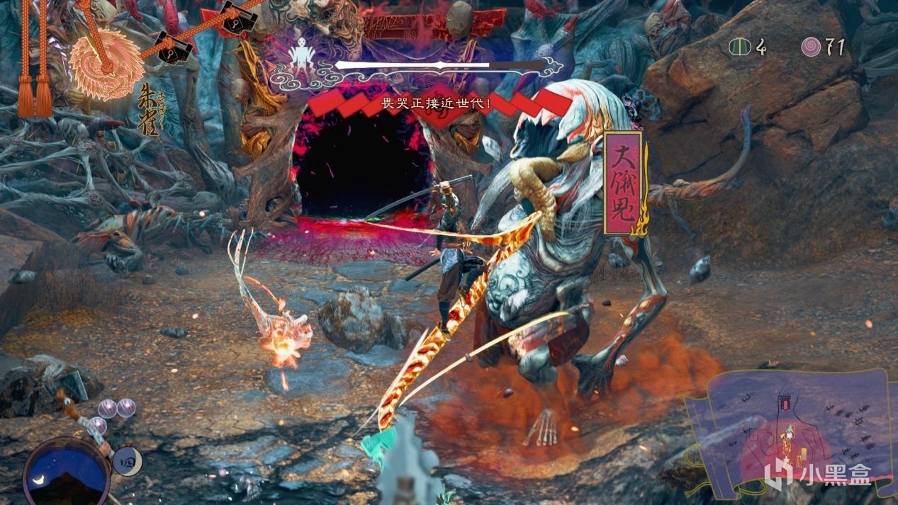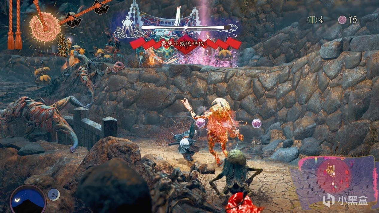 神道教與和風文化不僅體現在巫女的神樂與能樂、各種畏哭怪物與神話的映射之上,從鳥居林立的村落設置,到圍繞着解鎖小型藏物神龕設計的關卡內探索,再到遊戲內的收集品會記錄在御朱印或者繪馬之上,甚至當你按下菜單鍵,各種跳出遊戲外的UI也是通過繪在倒懸的扇面上呈現在玩家面前。