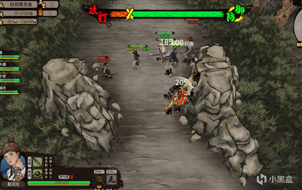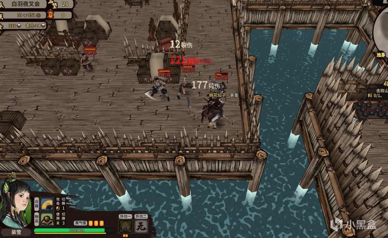 強盜山賊的老巢一般設在山洞、水寨、城寨之類的地方,玩家利用鍵鼠操作角色戰鬥,以攻擊、連招、格擋、外功絕技等方面進行戰鬥,如果操作得當,也會有種行雲流水的暢快感。這和武器也有關係,摺扇的連招看着就是比大刀的要賞心悅目;