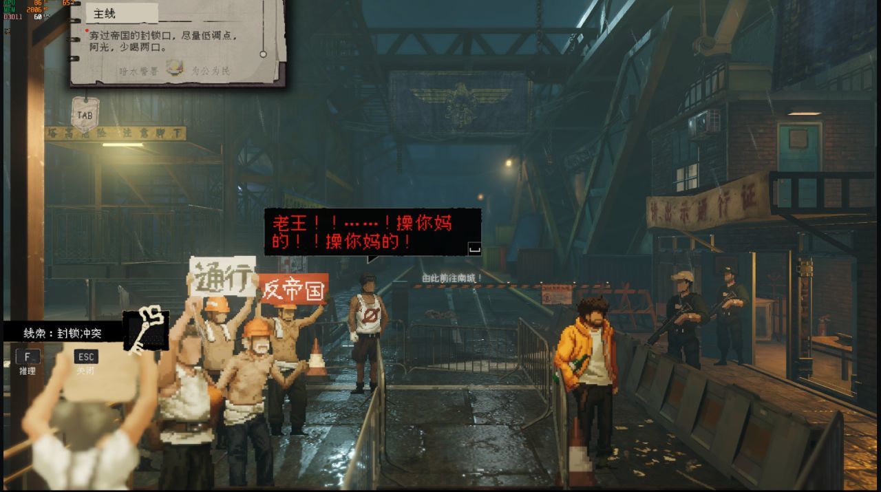 戒衛森嚴的封鎖線將自由與希望阻隔在外,只留下壓抑的喘息和反抗的吶喊。一面繪有展翅雄鷹的藍色旗幟隱藏在陰影之中,注視着發生的一切。