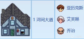 喬治,艾芙琳和亞歷克斯一家。位於皮埃爾的雜貨店的東南部,星之果實餐吧的後面