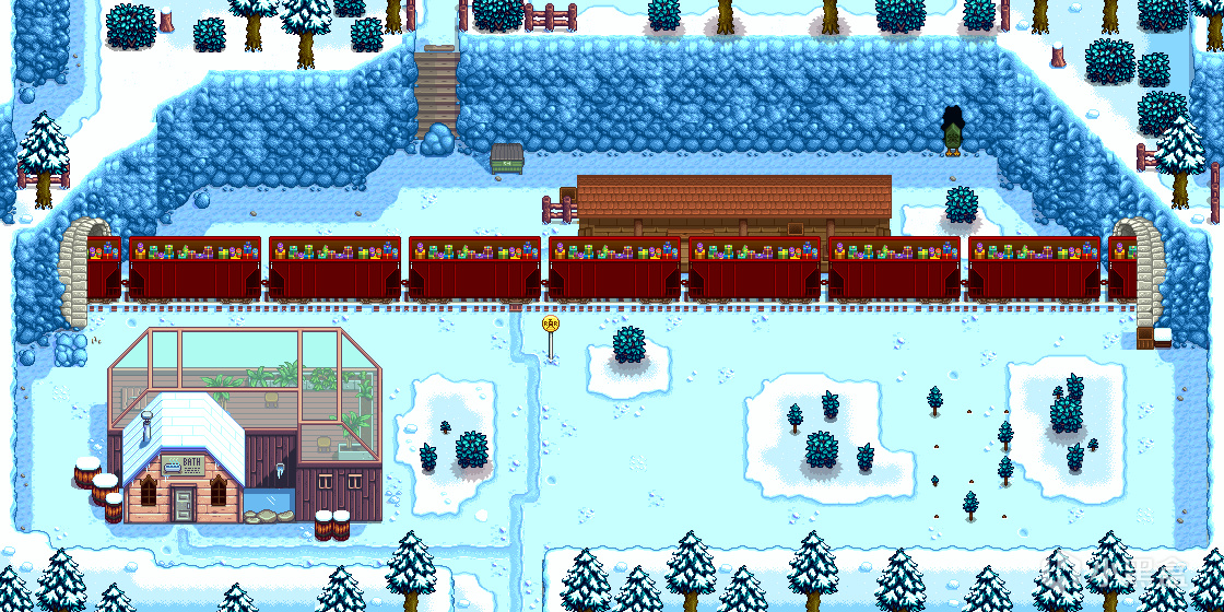 隨機一天的早上9:00到下午6:00,會有一列火車經過這裏。如果玩家在戶外, 將會彈出一條消息“一列火車正在通過星露谷”,並伴隨着火車的汽笛聲。(禮物火車只在冬季出現)