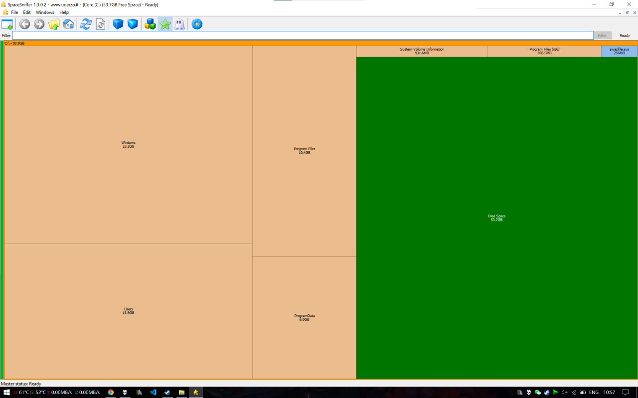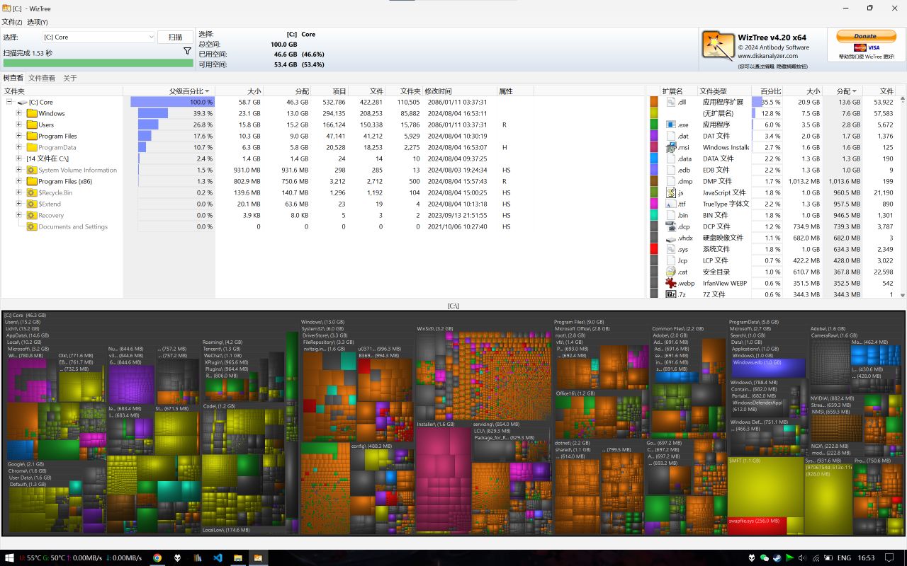 在清理之前可以使用 Space Sniffer, WizTree, WinDirStat 等软件了解C盘空间分布。