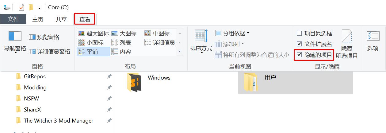 对于默认隐藏的文件夹,开启隐藏文件夹的显示即可看到