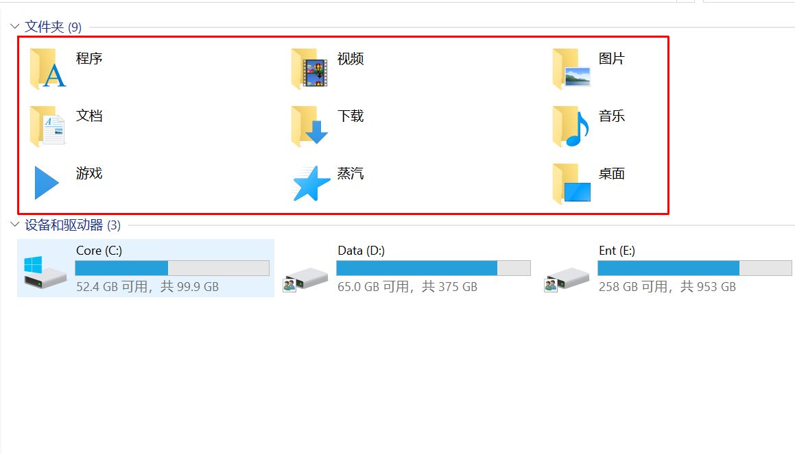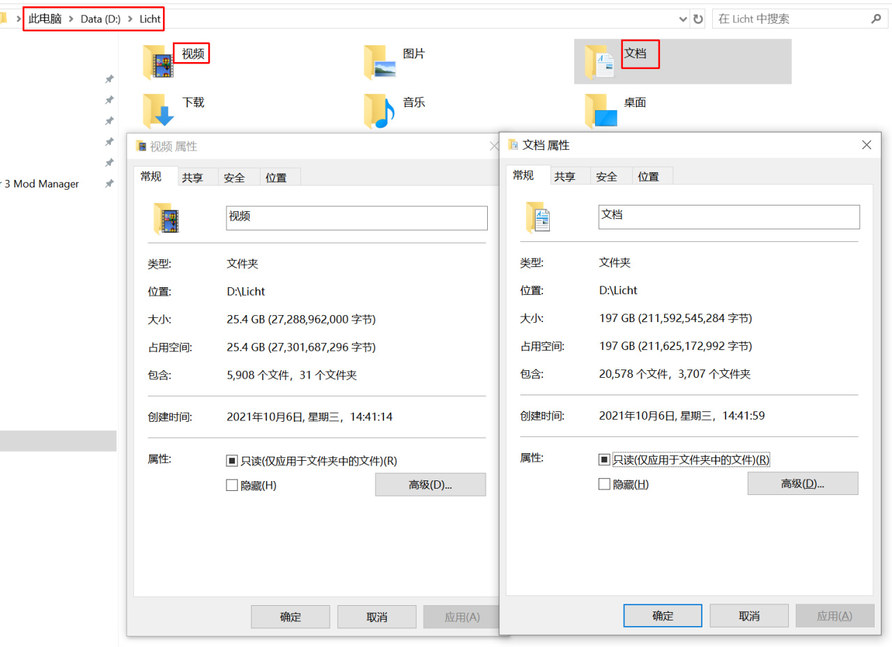 当然这个也与个人电脑使用习惯有关,例如我将这些文件夹全部移动到了D盘,占据了200G左右的空间,主要是因为我有分类的习惯,音乐、视频、文档占据了相当一部分空间。