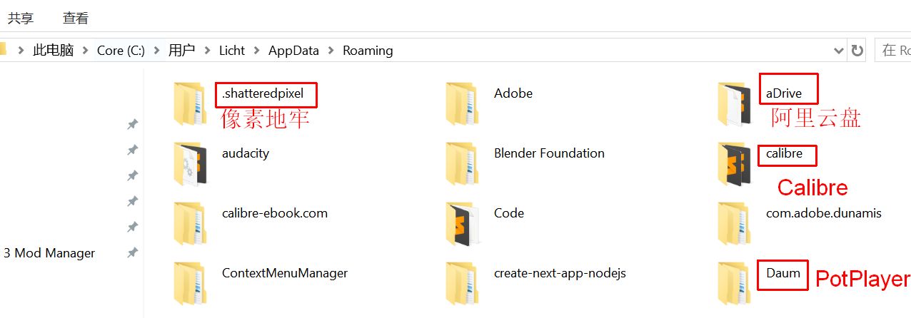 Roaming:软件常用数据文件夹