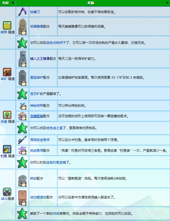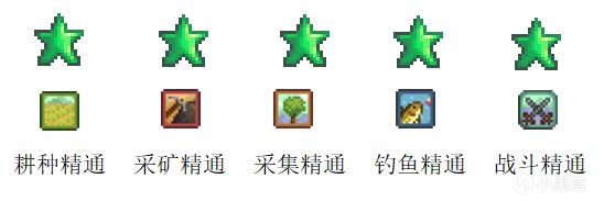 耕種精通,採礦精通,採集精通