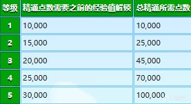 每一種精通都需要一個額外的等級,爲此需要越來越多的經驗。